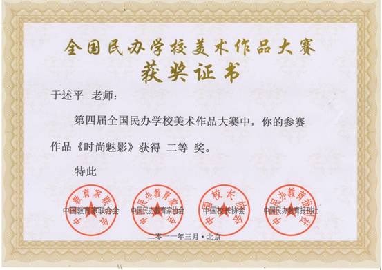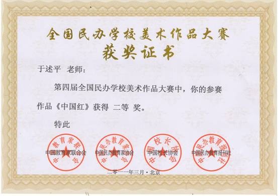 第四届全国民办学校美术作品大赛获二等奖