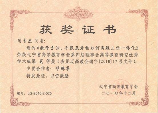 辽宁省高等教育学会第四届理事会高等教育研究优秀学术成果二等奖