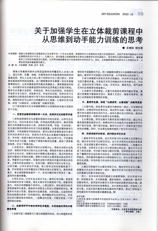 关于加强学生在立体裁剪课程中从思维到动手能力训练的思考